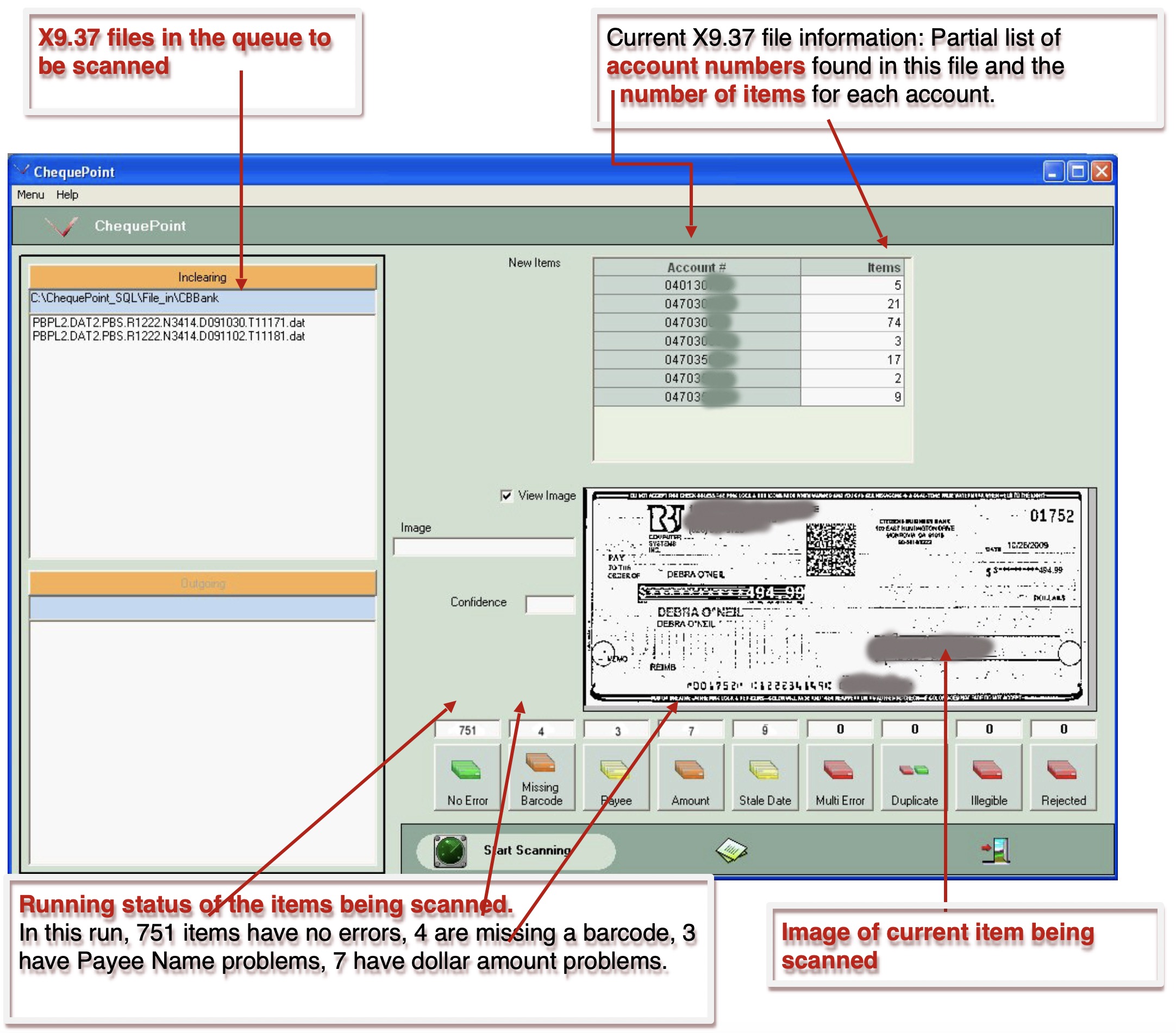 Cheque Guard will implement the ChequePoint at the Bank's (or its preferred processor) Operations/Data Center. The verification process begins with ICVS™ scanning 200 dpi check images in X9.37 or .TIF files.